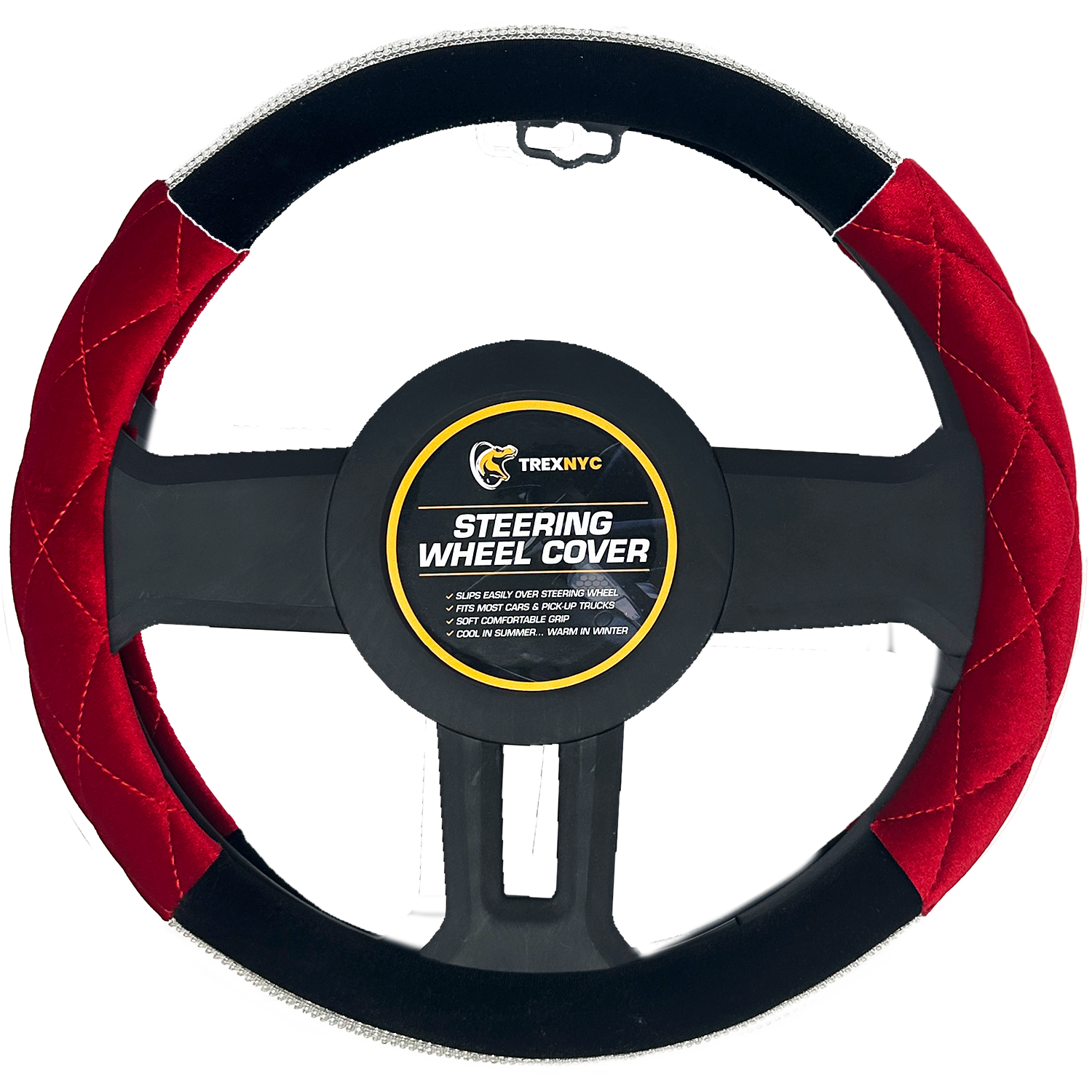 Increase quantity for TrexNYC Steering Wheel Cover, Bicolored Bling - Black/Red
