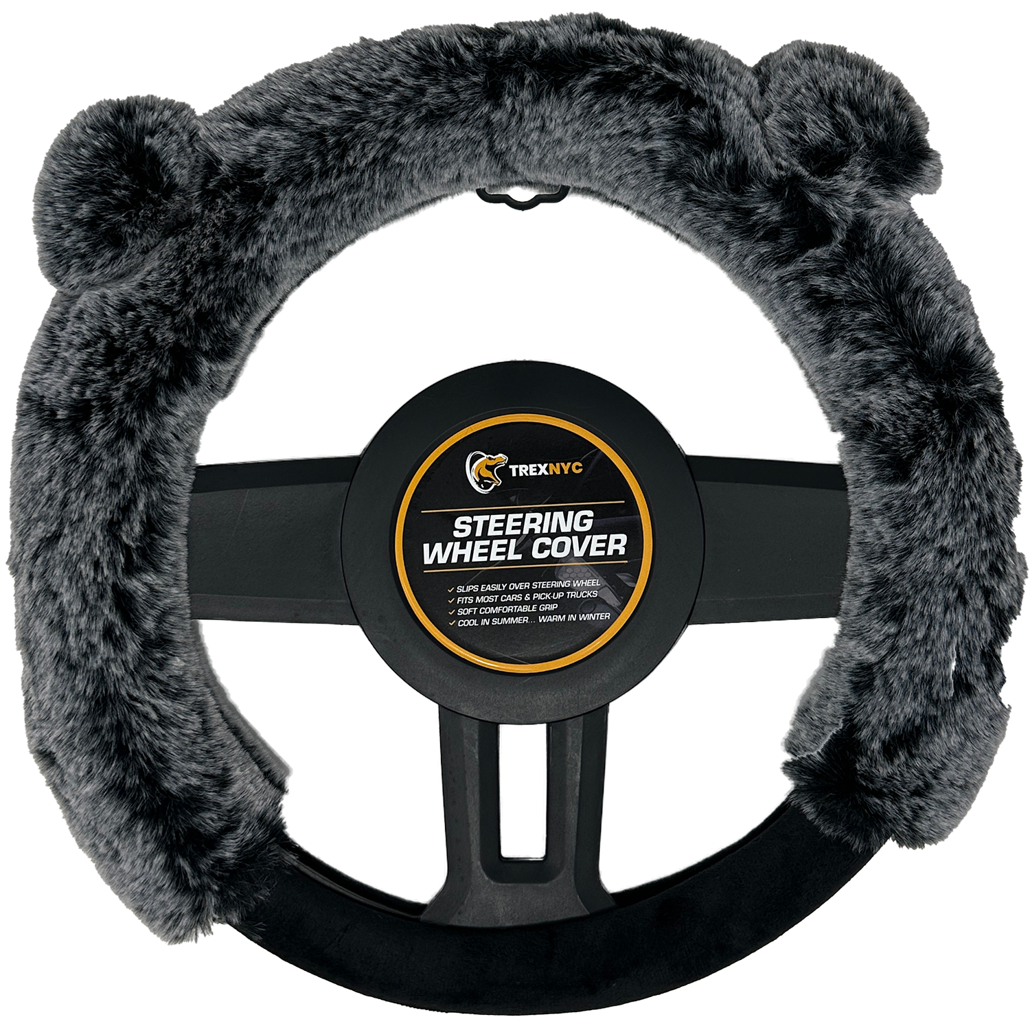 TrexNYC Steering Wheel Cover, Fur Ear - Gray/Black