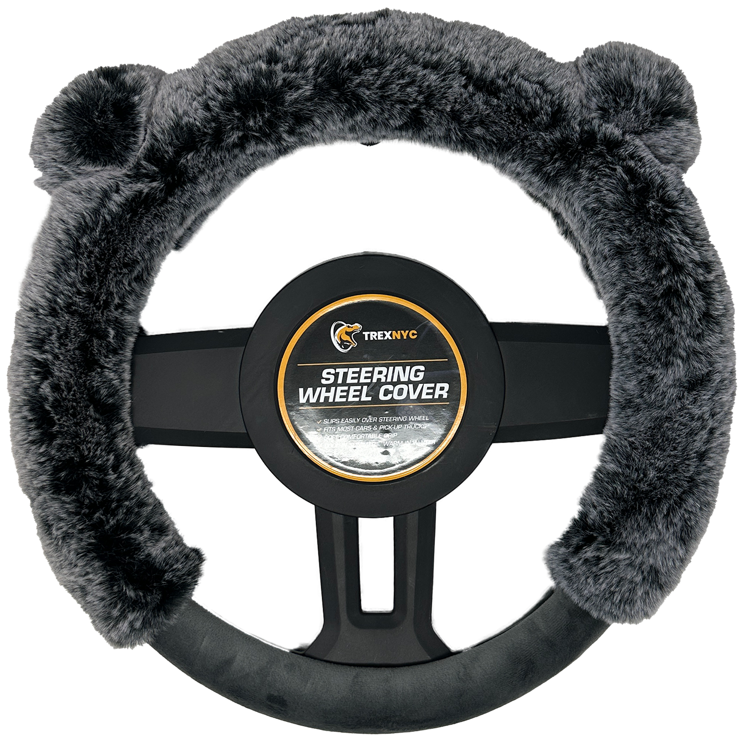 TrexNYC Steering Wheel Cover, Fur Ear - Gray/Gray
