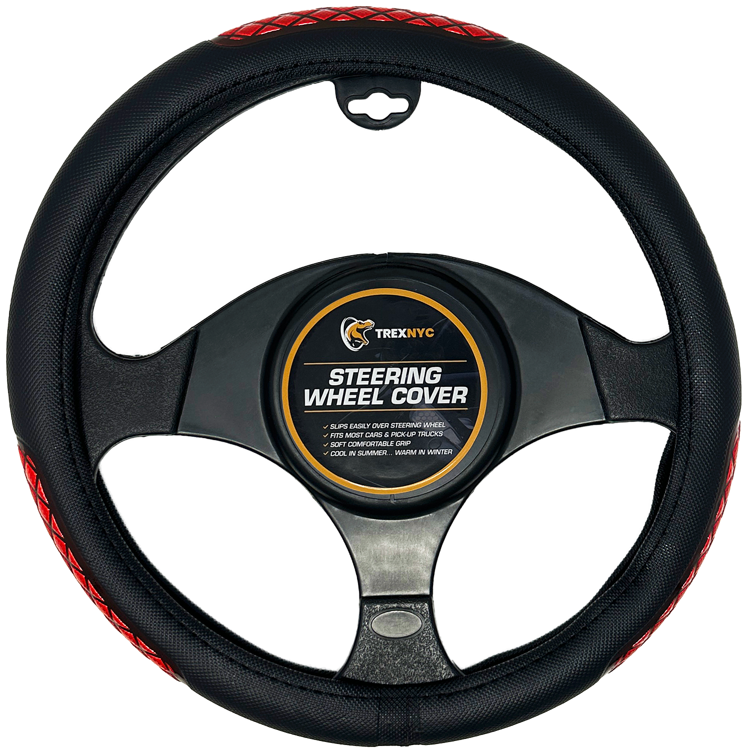 TrexNYC Steering Wheel Cover, Liam - Black/Red