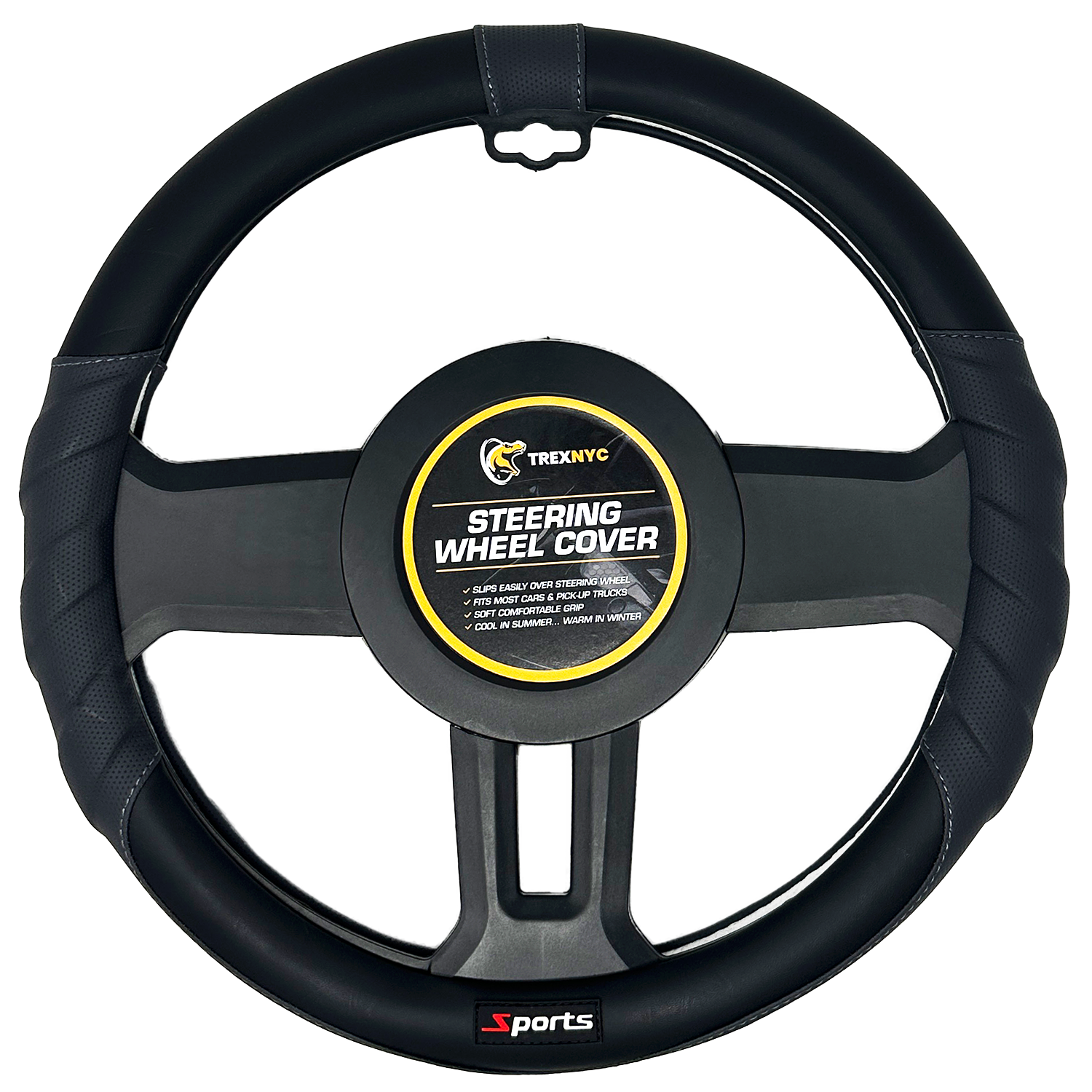 TrexNYC Steering Wheel Cover, Sport - Black/Gray